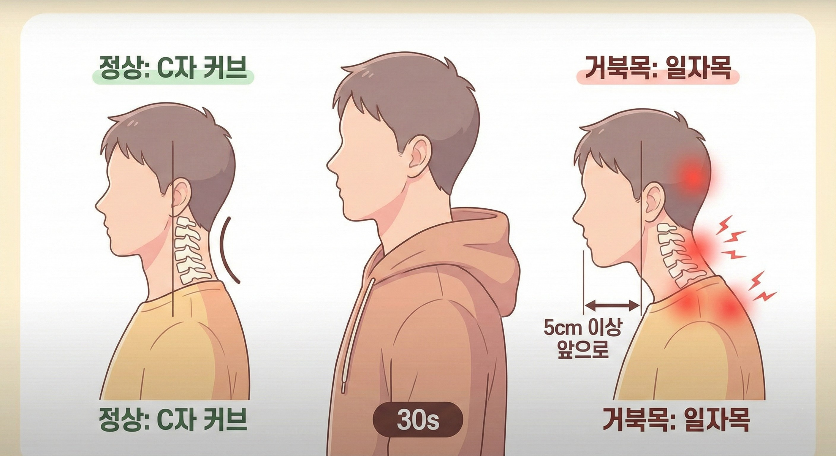 거울 볼 때 옆모습이 영 마음에 안 들어서 턱을 당겨보는데, 그 자세가 오히려 어색해요. 편하게 서면 목이 앞으로 쭉 빠지고, 어깨는 둥글게 말려 있죠. 최근엔 뒷목이 뻣뻣하고 두통까지 자주 와서 "이게 다 거북목 때문인가?" 싶어졌어요.